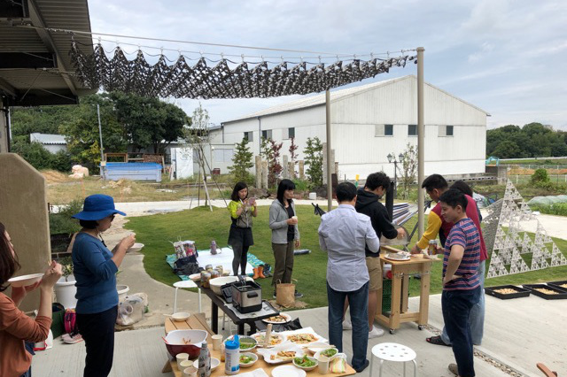 この理念を「ひと手間を味わう暮らしかた:一点モノのコトづくり」というキーワードにして,心地よくまったり過ごすことのできるカフェの運営,工作など必要なモノをつくりだすプロセスを愉しむことのできる暮らしの支援、「ゆるぎたるぎ日和」の無農薬野菜の栽培活動、暮らしとアート(生活と文化)に親しむ展示などを「ことラボ(ゆかいスタイル)」と呼ぶ会員制(入会されなくても一部は利用可能です)の施設を運営しています。