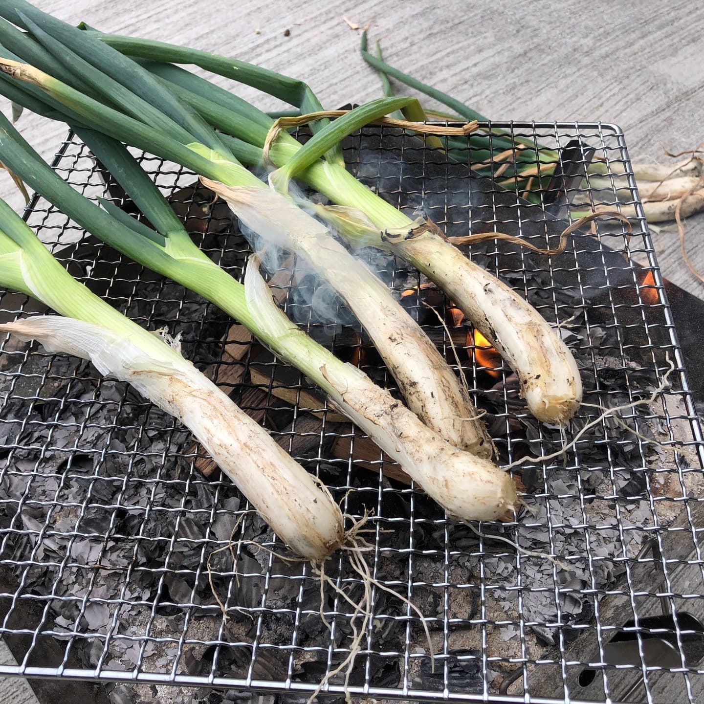 ネギ焼きびより | 畑から抜いてきたネギを焚き火で焼きます |