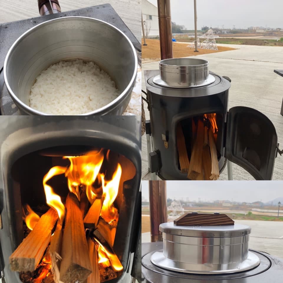 羽釜でごはんびより | 青空の下で,羽釜を用いてご飯を炊きます |
