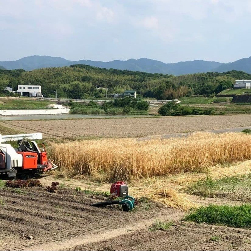 小麦収穫びより | 小型コンバインを使いますが,天日で乾燥させます |